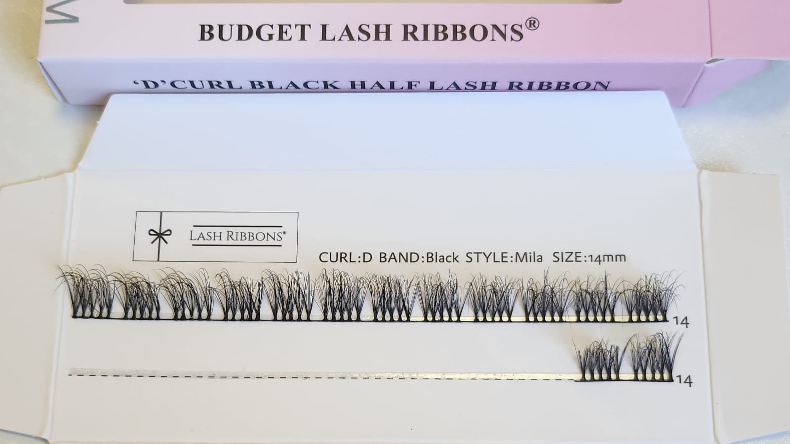 They are the ultimate in allowing you to create your own set of lashes that no-one else will be wearing but they will all be talking about and wanting! Whether you want to add as segments, double segments, strip lashes or just a small cluster to give an added lift to your own lashes, the choice is yours. You simply trim the ribbon to the size you want, ensuring that you cut off any excess band, and then apply to your own lashes using our Lash Bond Glue to create a set of unique styled lashes that will stay on for 7-14 days.
