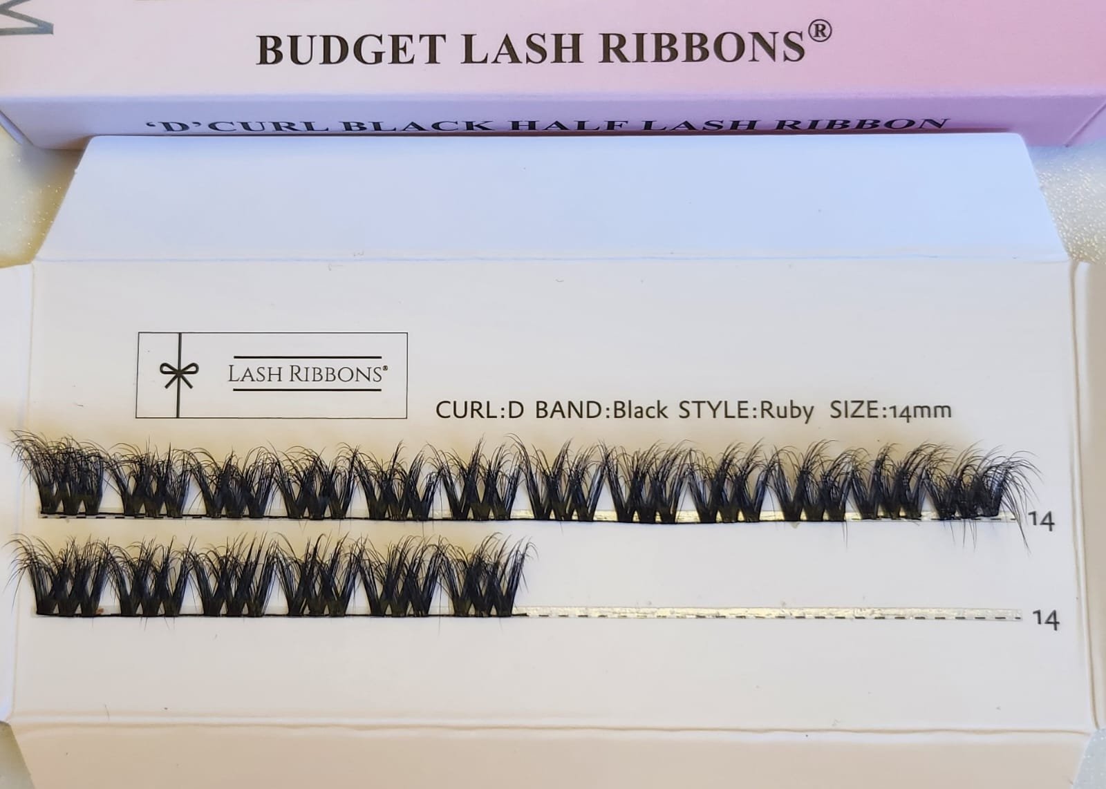 This range of Fluff’Em Budget Lash Ribbons® are the perfect solution for customers who do not wish to compromise on quality whilst being extremely affordable. These lashes are so fluffy and sooo soft, its hard to believe the price tag! The two half lash ribbons will give you approx 2.5 sets of lashes. If you care for these properly you should be able to reuse 2/3 times, but please do not expect the same durabilty as our standard lash ribbons, this is reflected in the cost of these. The range is available in 10mm, 12mm and 14mm allowing you to create a whole range of different styles