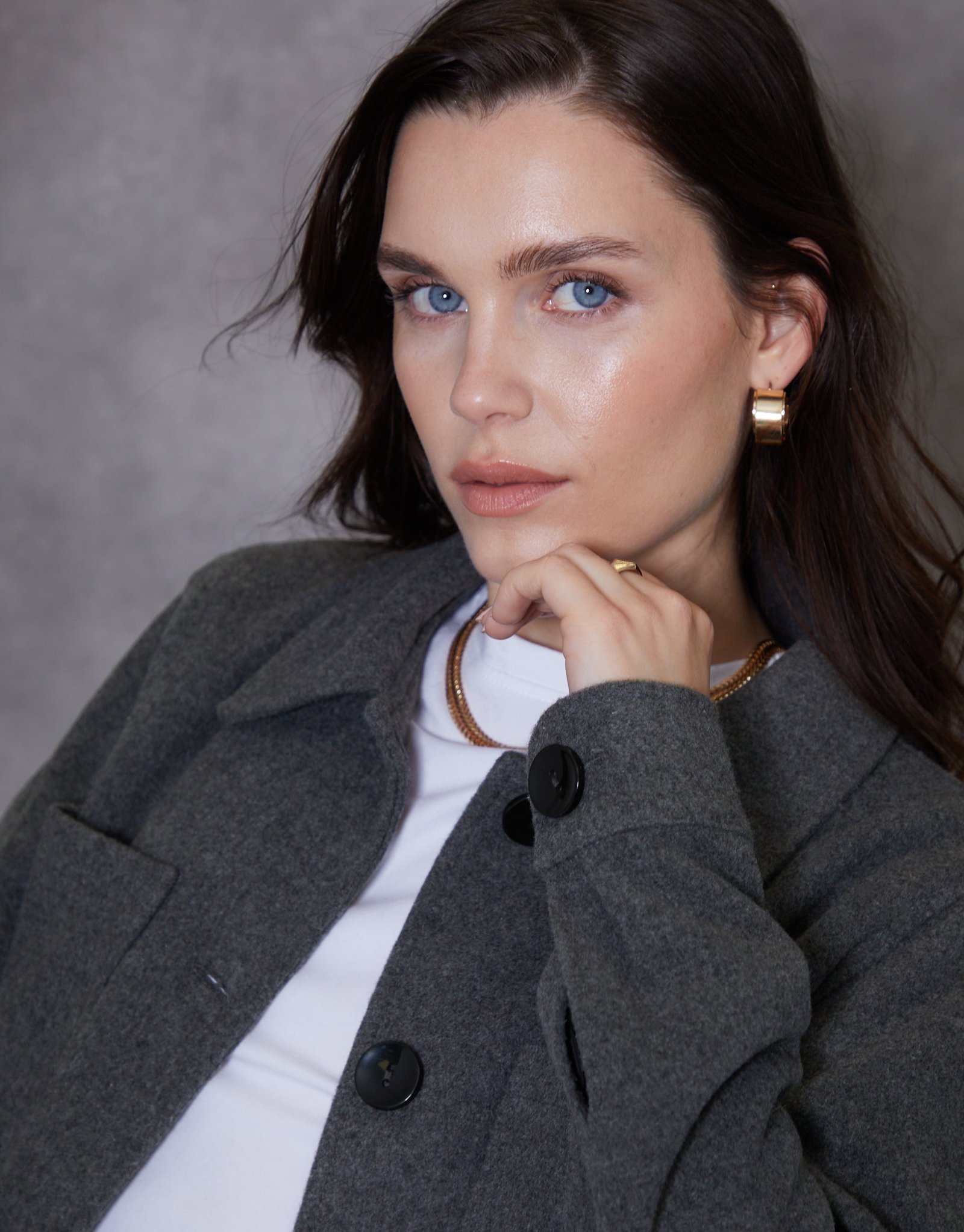 Designed for both fashion-forward individuals and comfort seekers, this shacket has button-down fastening and is fully lined in the body and sleeves.